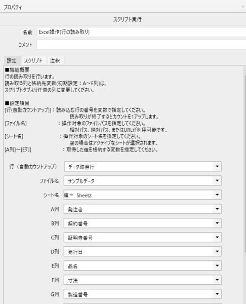 ライブラリ>18_Excel関連>03_行列操作>Excel操作(行の読み取り)