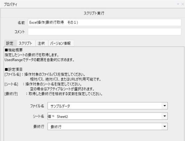最終行・・・WinActor(ウィンアクター)が認識した最終行の情報を格納するための変数