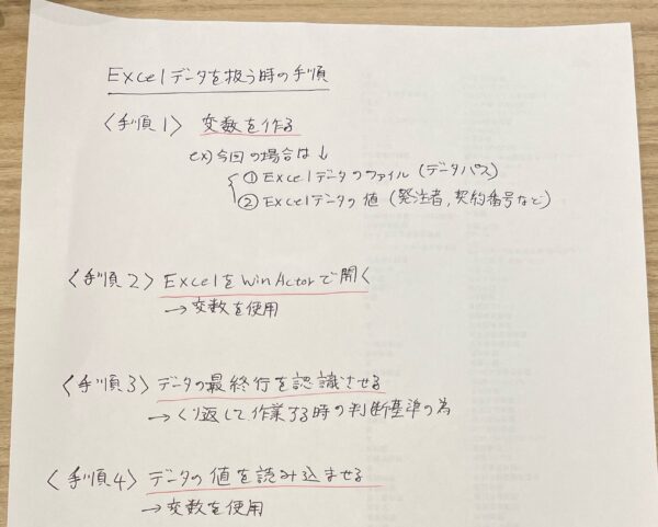 作業2 ExcelデータをWinActor(ウィンアクター)に読み込ませる