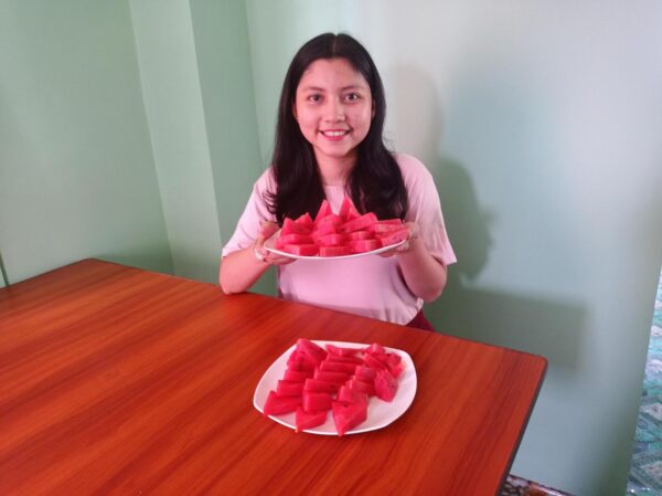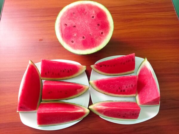 夏と言えばスイカ!甘くて美味しいです〜! 1玉3000チャットだから、日本円だと200円くらいかな!?