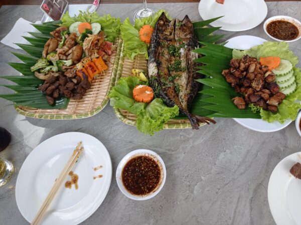 私は、グリルフィッシュ、ローストビーフ、ポークリブ、グリルチキンレッグを食べました。