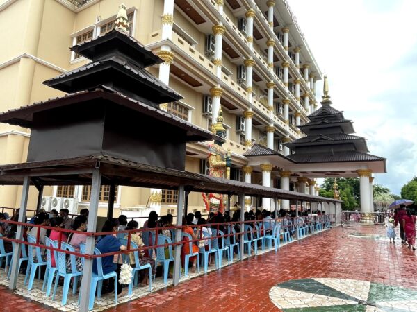 私たちが到着すると、すぐに巡礼の列ができ、混雑していました。