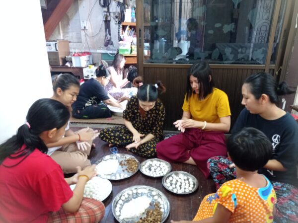 ミャンマーの新年の始まりである1日には、Antaral Kin Aungの僧侶を招き、祈りと善行を行います。