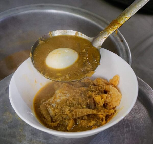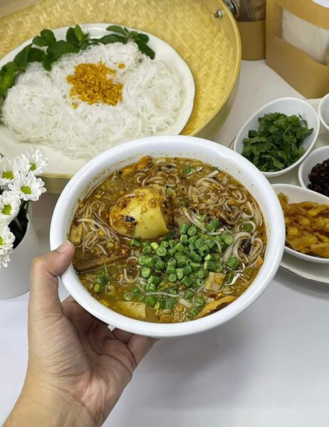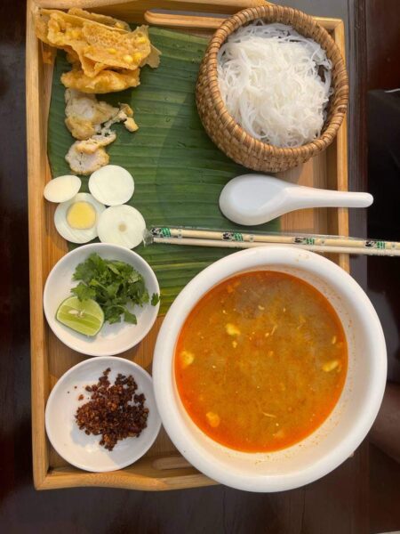 ブ・テ・ギョウ、ペ・ギョウ、イ・キャー・クェイなど、お好みの食材と一緒に食べることができます。香りは甘く、味はとても美味しいです。値段も安い。私は毎朝、会社に行くときに朝食としてモヒンガー(Mont Hin Gar)を食べています。路面店や市場では、1合800、1000チャット(約50円)程度です。レストランでは、2000チャット前後です。