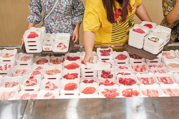様々な種類の肉、様々な種類の魚介類、様々な種類の野菜などが鍋用に用意されていて、