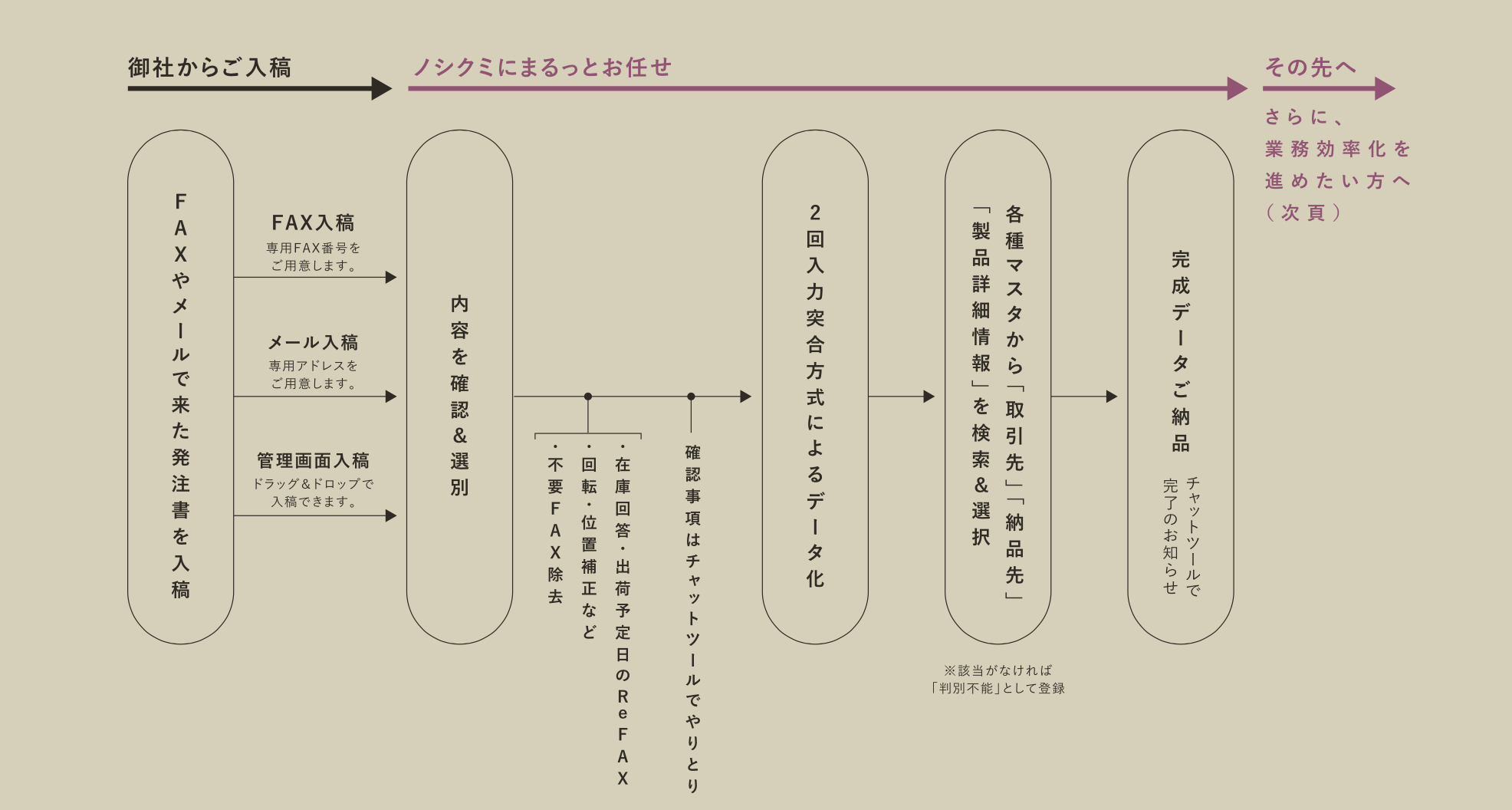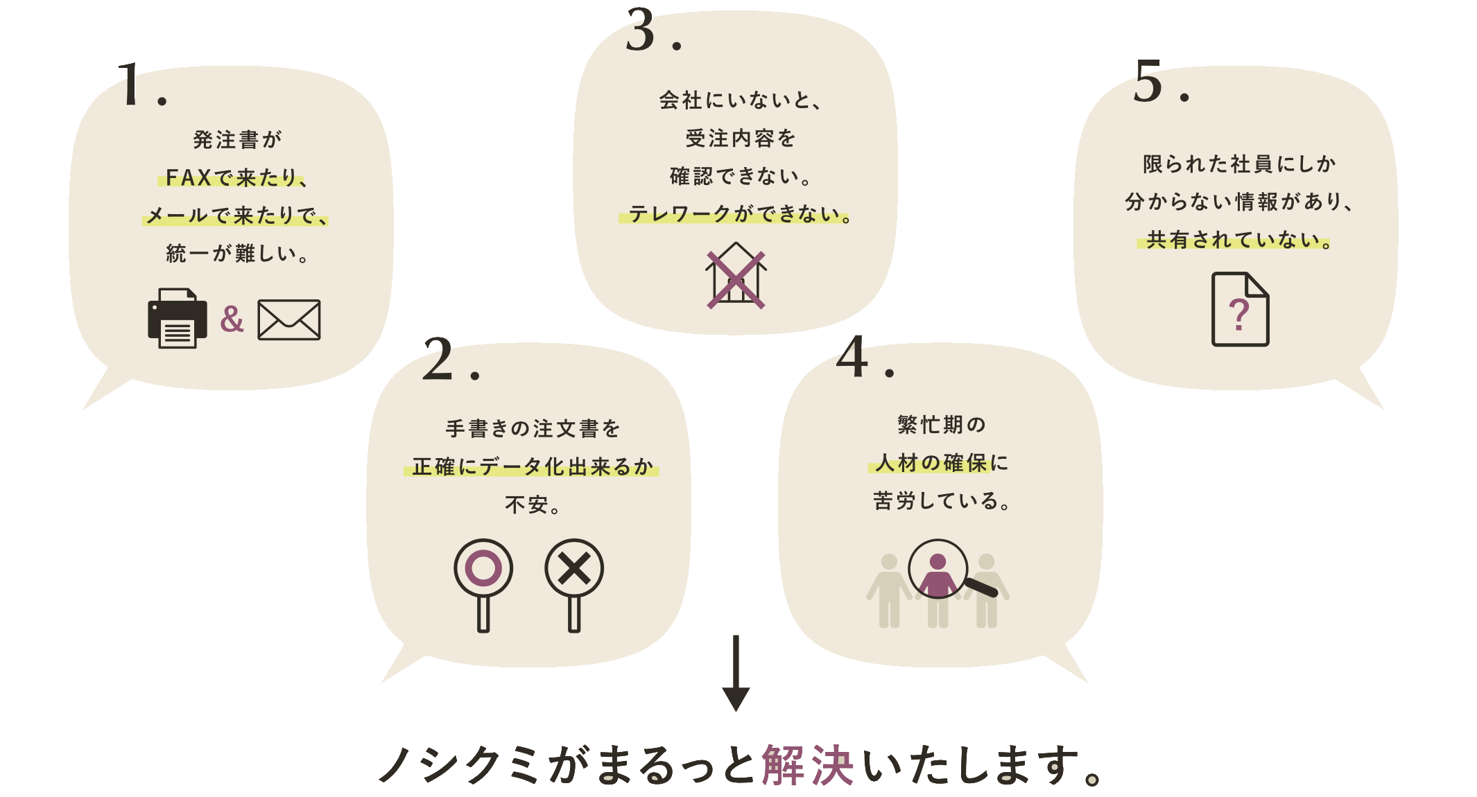 お客様から届いた発注書はノシクミにまるっとお任せください