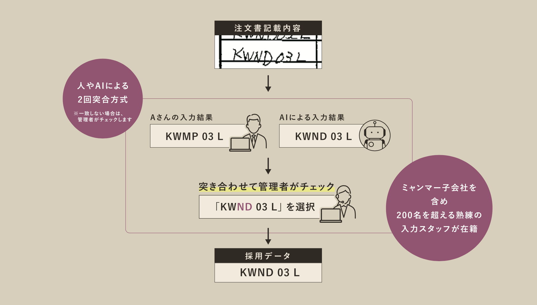 FAX画質による文字のかすれによる判別不能文字があった場合、発注主に直接確認いたします。