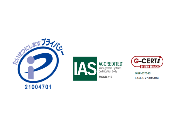 弊社では 『プライバシーマーク』 および 『ISO27001(ISMS)認証』を取得しております。これらのマネジメントシステムに則り、お預かりしたデータを取り扱います。